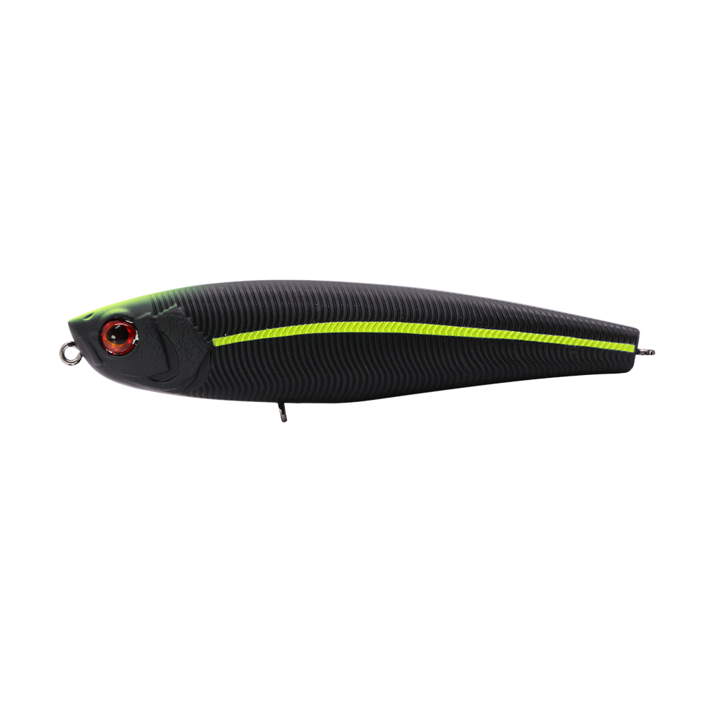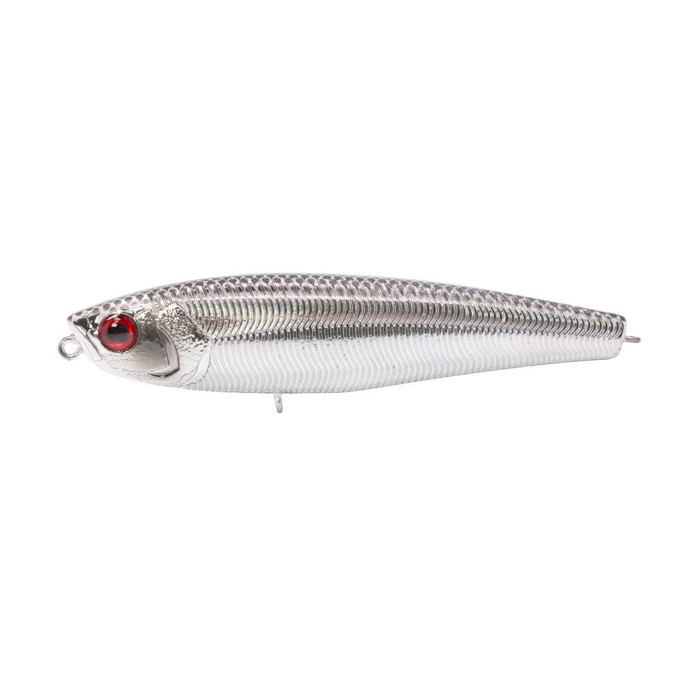 The BD 95 Super Sound is a “walk the dog” bait designed to simulate the most lethargic predators. The tapered shape of the body allows long and precise casts as well as making it very easy to animate with the classic WTD retrieval. The metal balls inside the special resin body of the bait create an exclusive “sound” of great impact. This bait is armed with three strong treble hooks and the colors are made with UV coating finish.