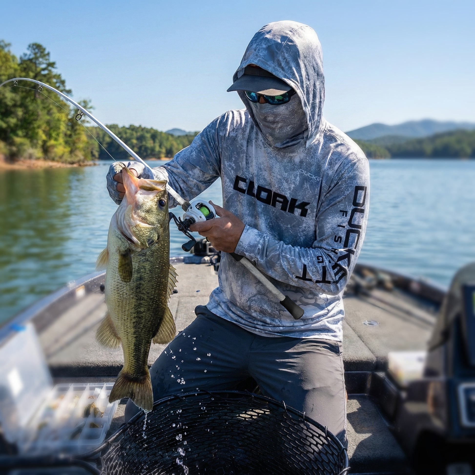 The CLOAK™ Hoodie is built for long days on the water, delivering lightweight comfort, mobility, and full sun protection. Featuring custom GuntersVeil™ Camo, a breathable polyester/spandex blend, and UPF 50 protection, it’s designed to move with you while keeping you covered. An integrated hood and neck gaiter add protection from sun and wind without added bulk. Athletic fit, true to size.