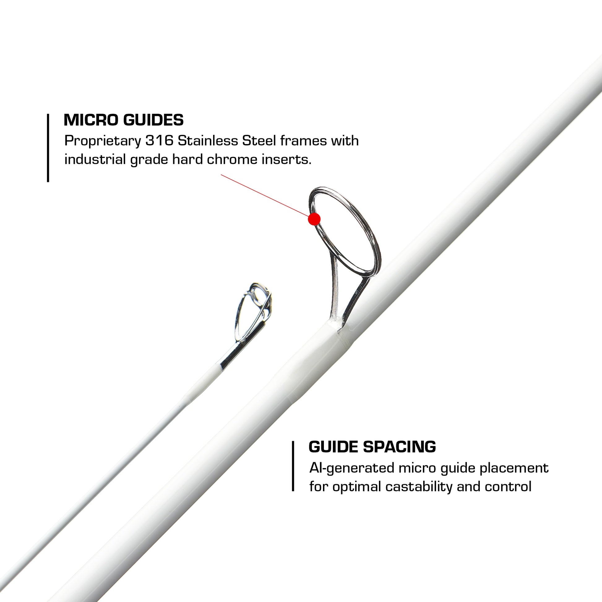 Description: Longer castability with great bite detection. Pieces: 1-piece Handle Length: 8.6" Guides: Micro-guides Guide Count: 7+1 Techniques: Casting floats, jig and cork, spider rigging |
