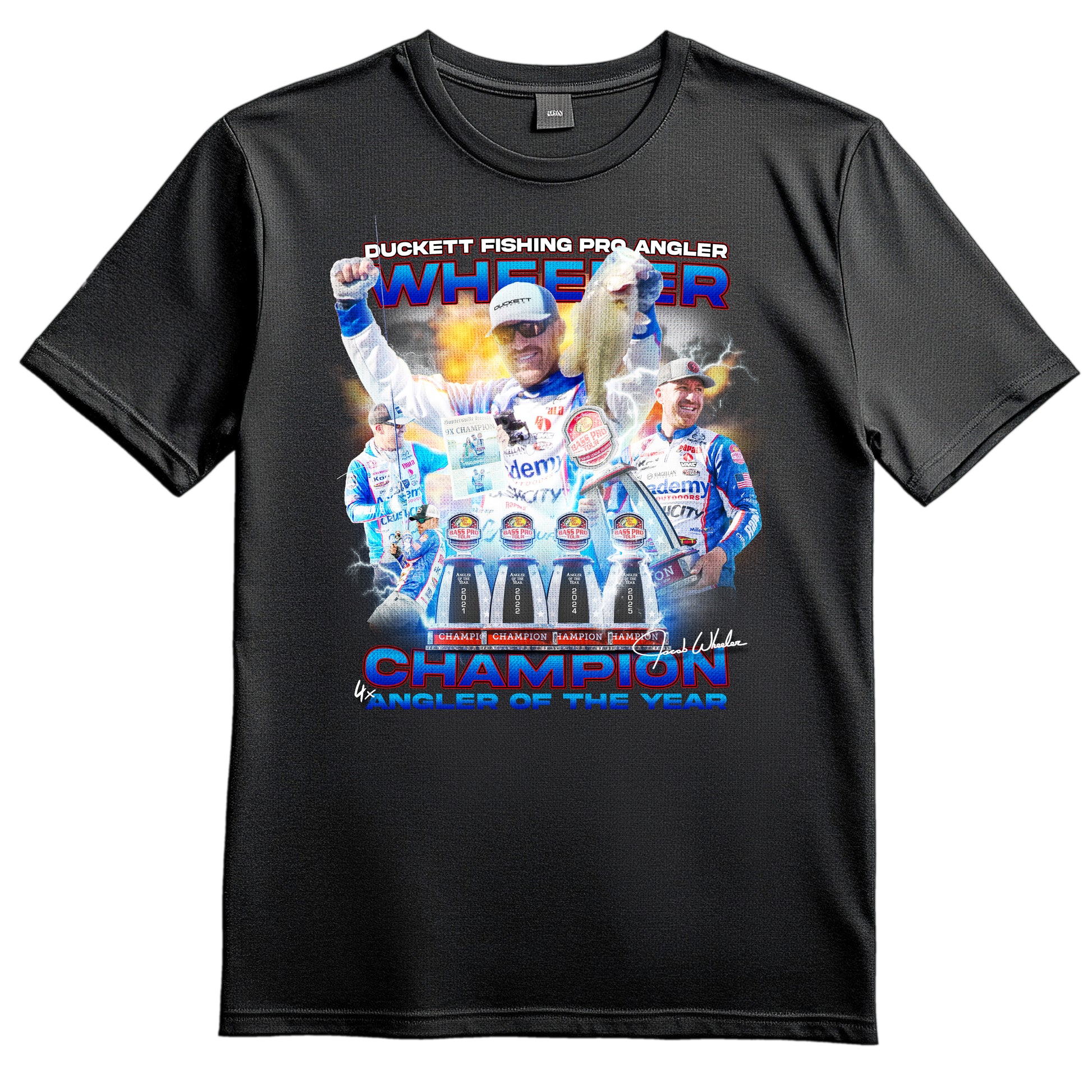 Celebrate history with the limited-edition Jacob Wheeler 4x Angler of the Year Tee. Designed in the same relentless spirit Wheeler brings to every tournament, this shirt marks his fourth AOY title in just five years on the Bass Pro Tour. Bold graphics and premium comfort make it more than just a shirt — it’s a piece of bass fishing history.
