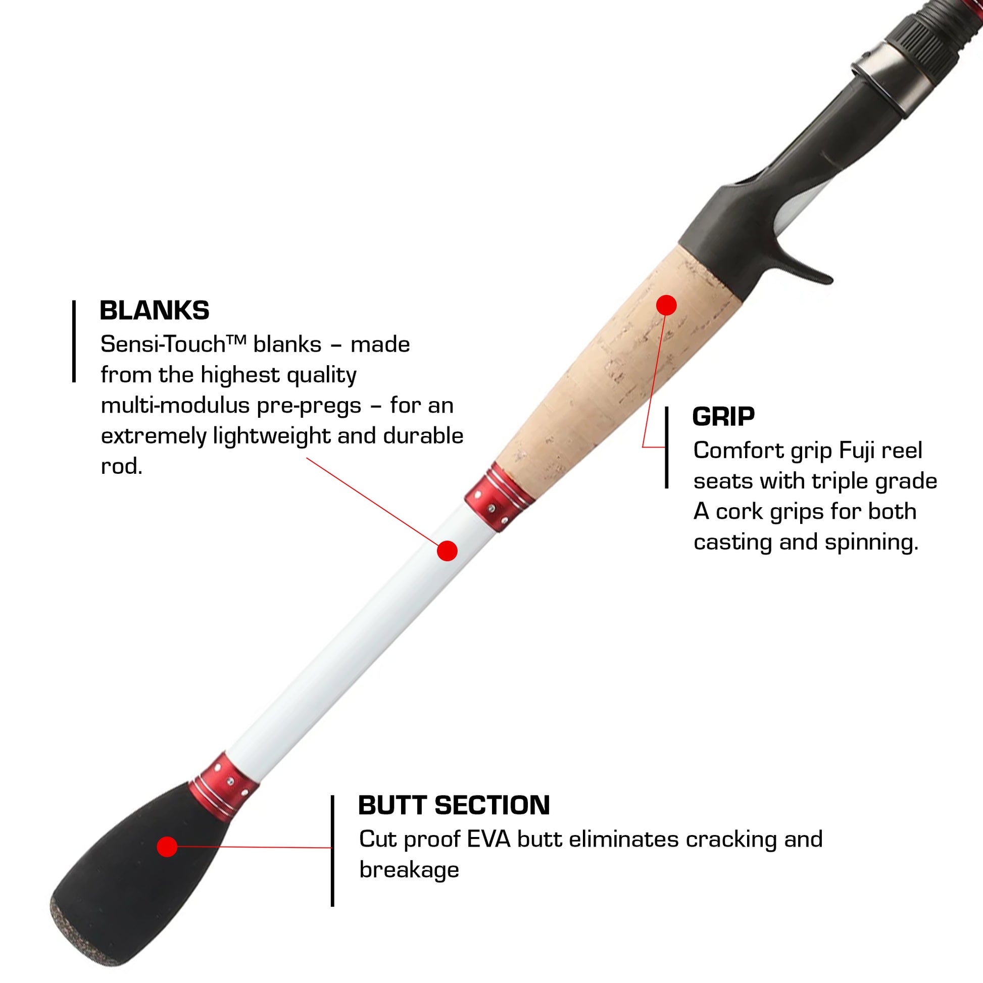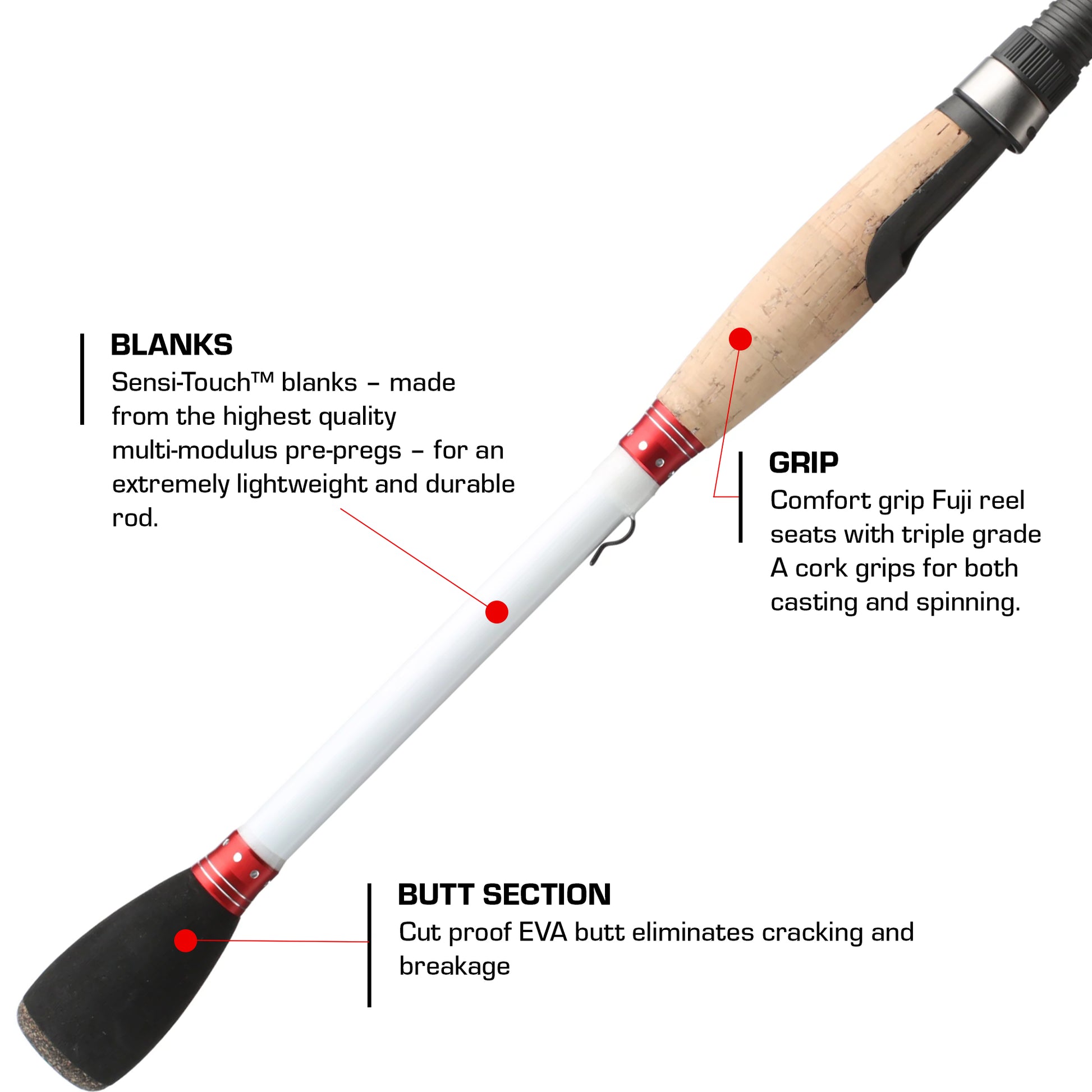 - Sensi-Touch™ blanks – made from the highest quality multi-modulus pre-pregs – for an extremely lightweight and durable rod.