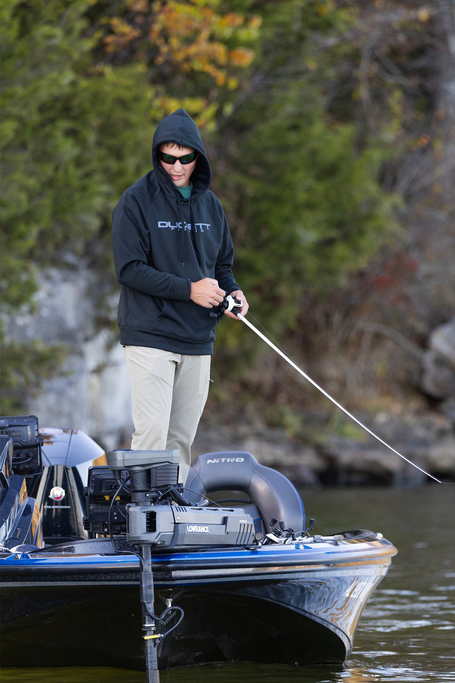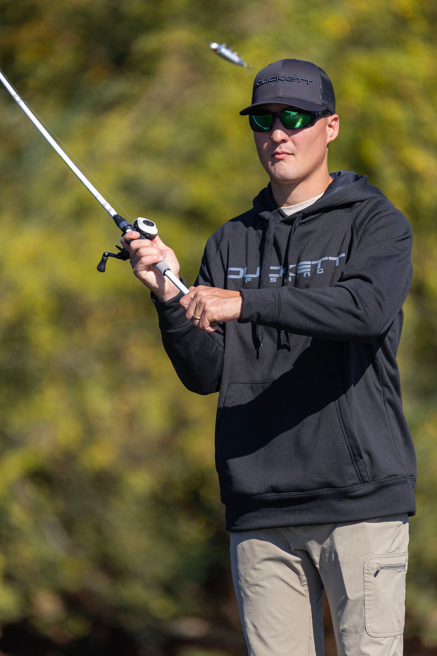 Stay warm, stay sharp. The Duckett Fishing Performance Hoodie is built for comfort with a clean athletic fit and lightweight warmth that won’t hold you back. Featuring our newly revamped logo front and center, this hoodie lets you represent Duckett with pride on the water, at the weigh-in, or anywhere in between.