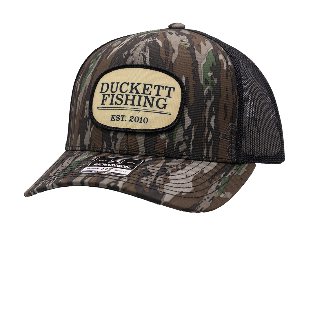 Classic fit, modern style. The Duckett Fishing Richardson Patch Hat pairs a structured Richardson 112 profile with our bold logo patch front and center. Designed with a breathable mesh back and adjustable snap closure, it’s built for long days on the water or everyday wear. Durable, comfortable, and unmistakably Duckett.