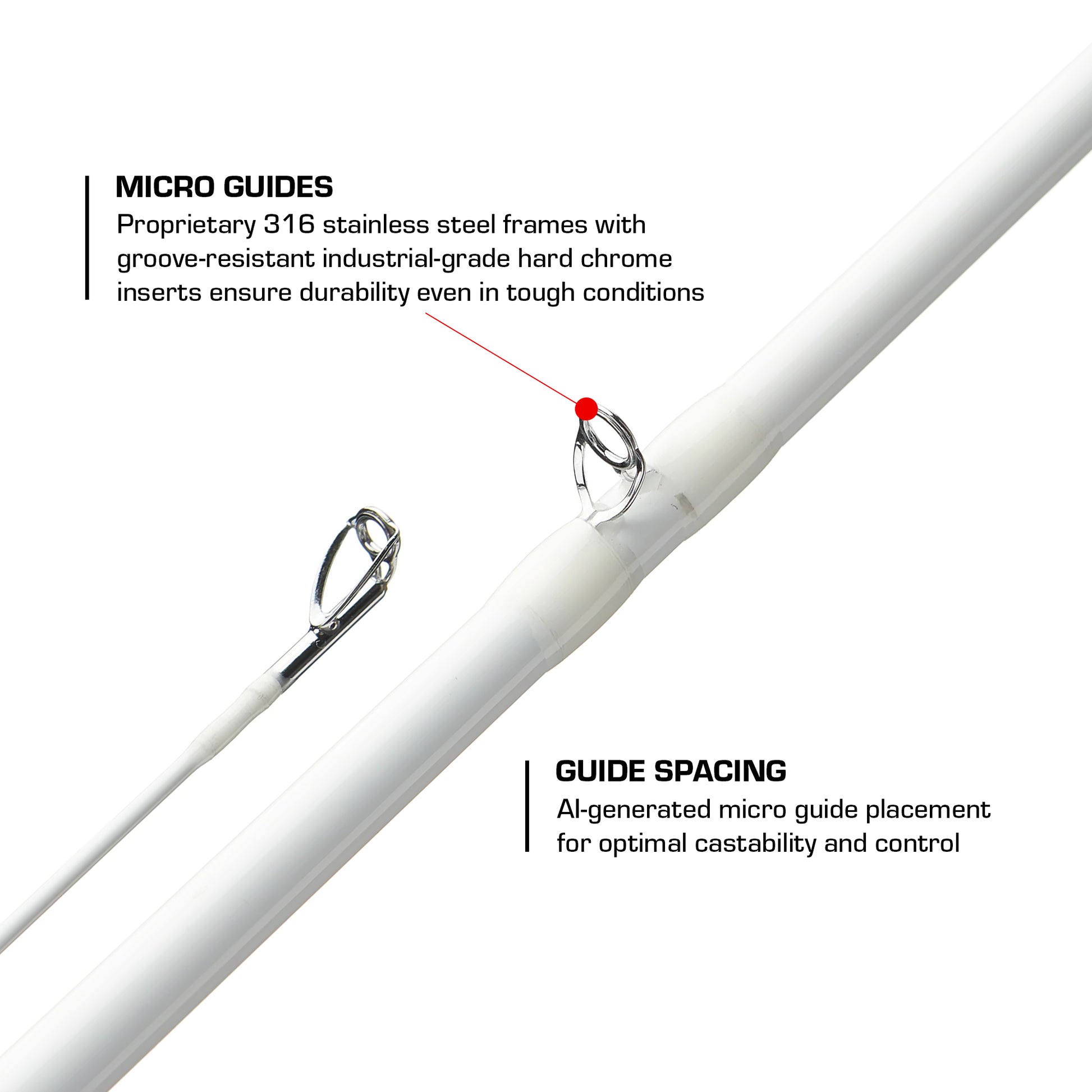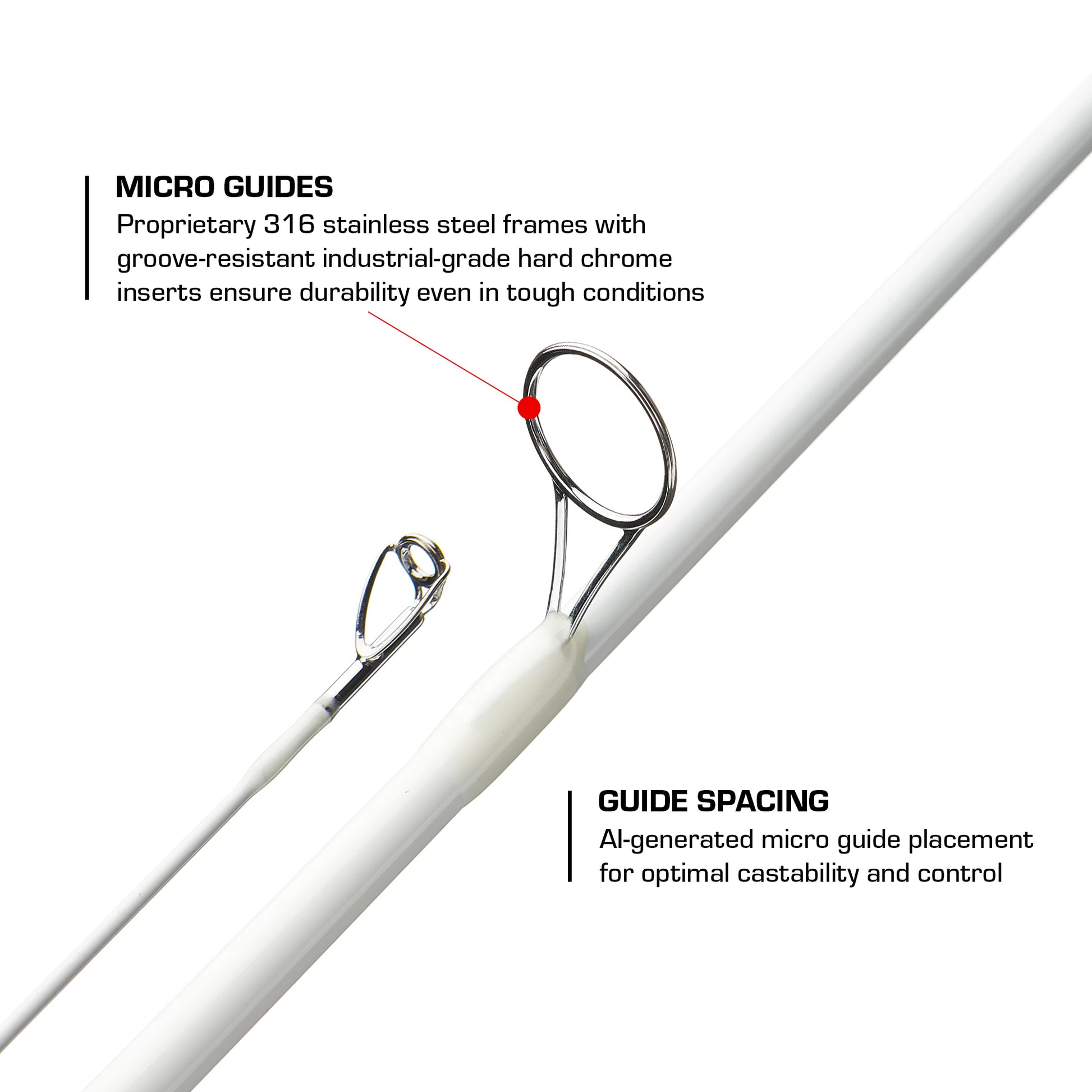 Micro Guides: Proprietary 316 stainless steel frames with groove-resistant, industrial-grade hard chrome inserts for long-lasting performance even in tough conditions